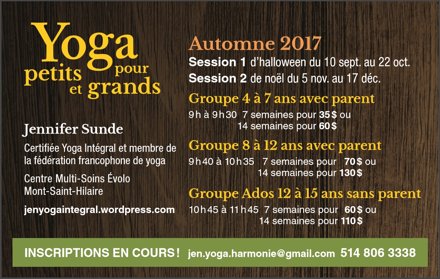 Coordonnées : 514.806.3338 ou jen.yoga.harmonie@gmail.com